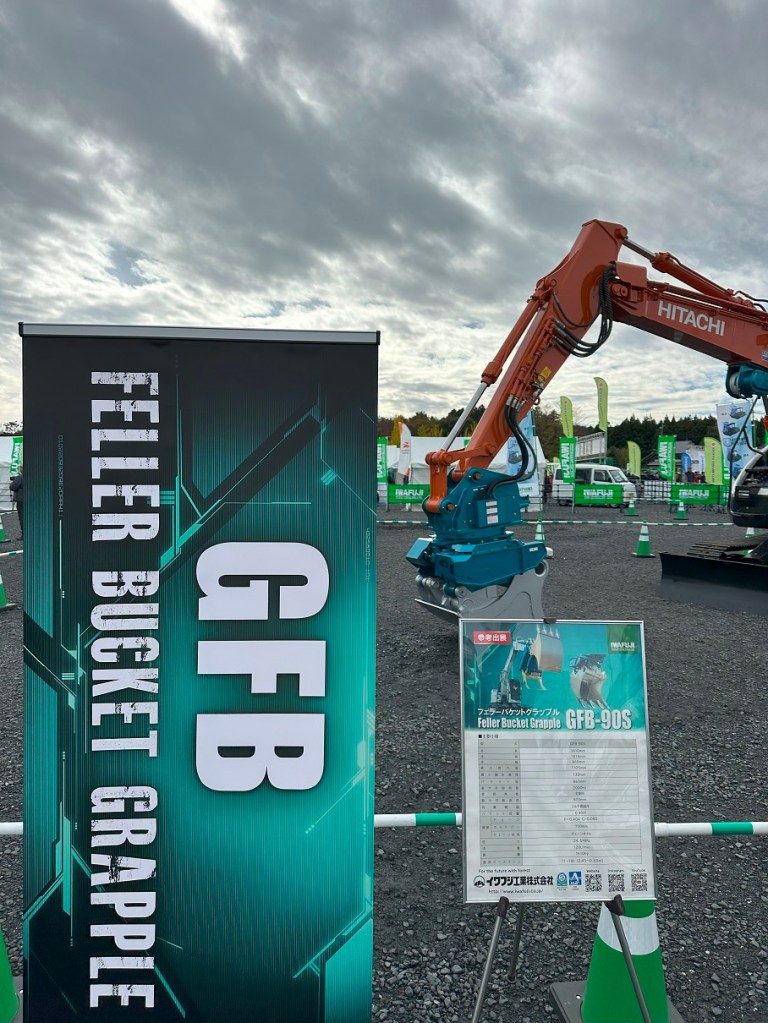 特にここで紹介したいのはイワフジ工業株式会社が発表した新製品フェラーバケットグラップル GFB-90S です。